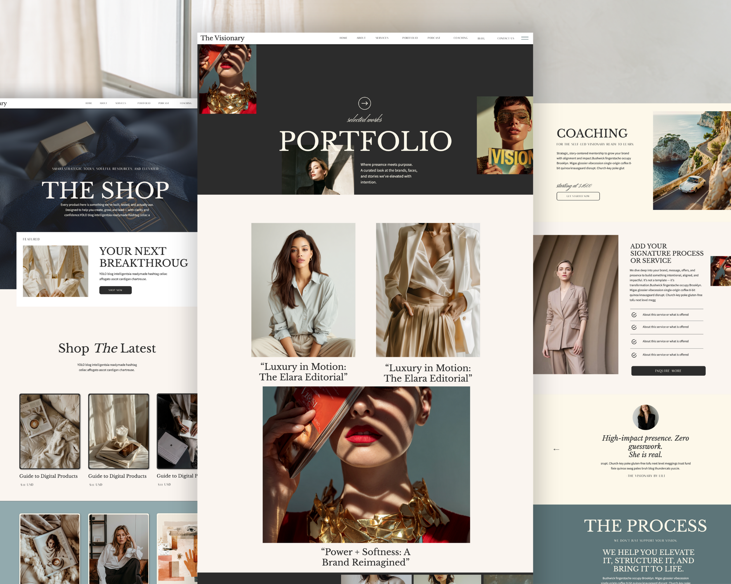 A full suite of luxury Showit pages + design elements to build your dream website: